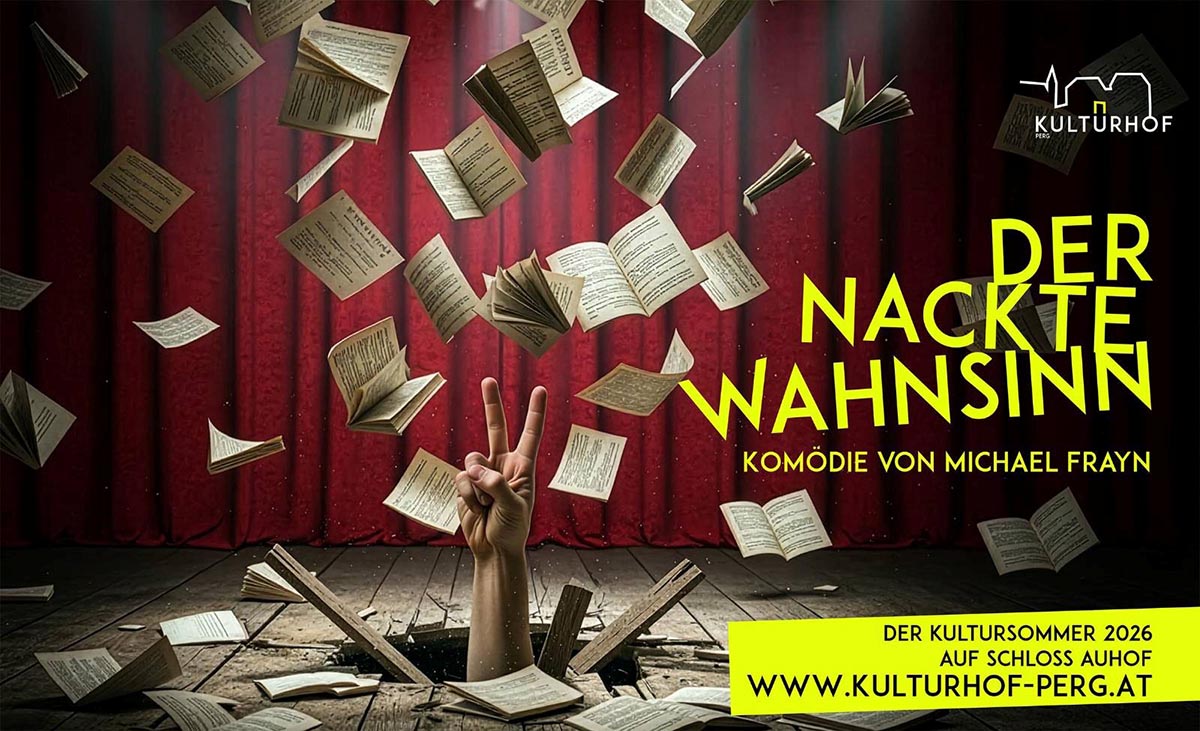 Diesen Sommer verwandelt sich der Kulturhof Perg in einen Schauplatz herrlichster Turbulenzen. Mit Michael Frayns Komödien-Klassiker „Der nackte Wahnsinn“ gewährt das Ensemble rund um Martin Dreiling und Julia Ribbeck einen selbstironischen Blick hinter die Kulissen: Eine Theatergruppe kämpft kurz vor der Premiere mit Zeitnot, geringem Talent und großen privaten Themen. Das Ergebnis ist ein rasanter Abgrund aus Chaos und Witz, der kein Auge trocken lässt.